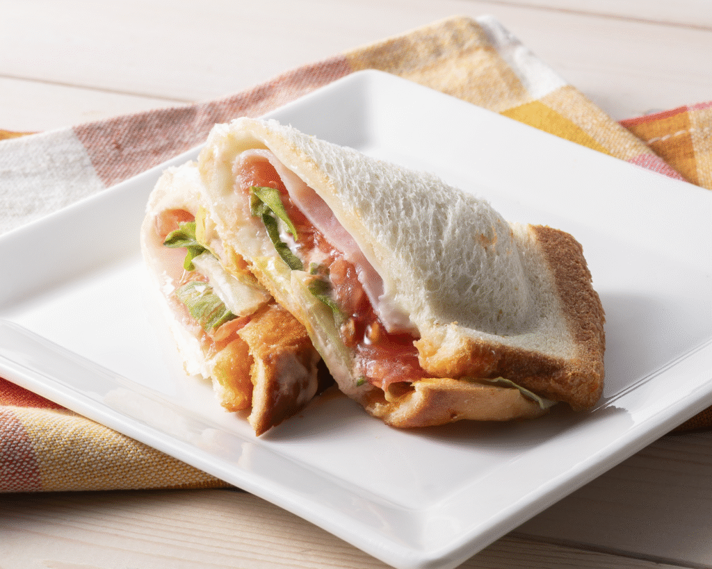 ハム、レタス、トマト、チーズを使った王道ホットサンド!
