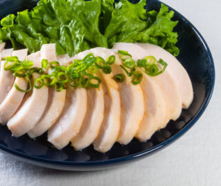 塩で味をととのえ、器に盛り、セロリの葉をちらし、粗びき黒こしょうをふる。