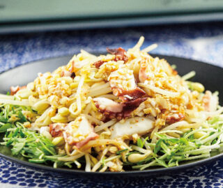 260℃で10分煮たら、器に盛る。最後に三つ葉をトッピングする。