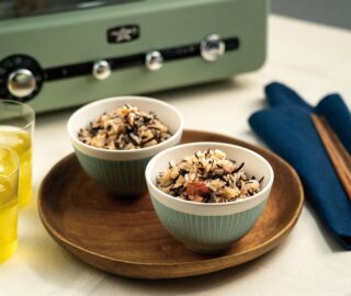 ラム肉についたたれを軽く落とし、グリラーに並べる。目盛「2」で5分ほど焼く。裏返したら、さらに焦げ目がつくまで5分ほど焼く。