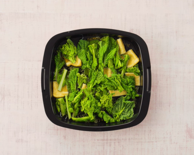 菜の花が手に入らない時季の場合、小松菜2株(70~80g)でも同様に作れます。