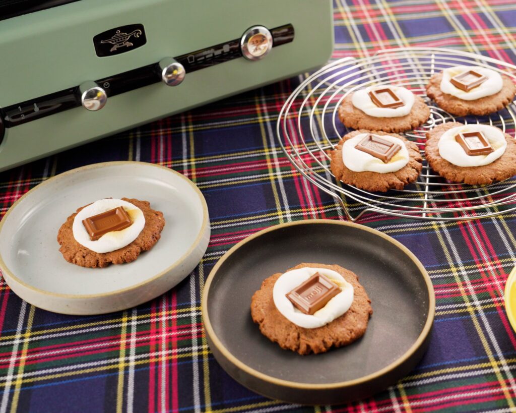 ③の中央にマシュマロをのせ、再度上段に入れて200℃で2分ほどマシュマロに焼き色がつくまで焼く。